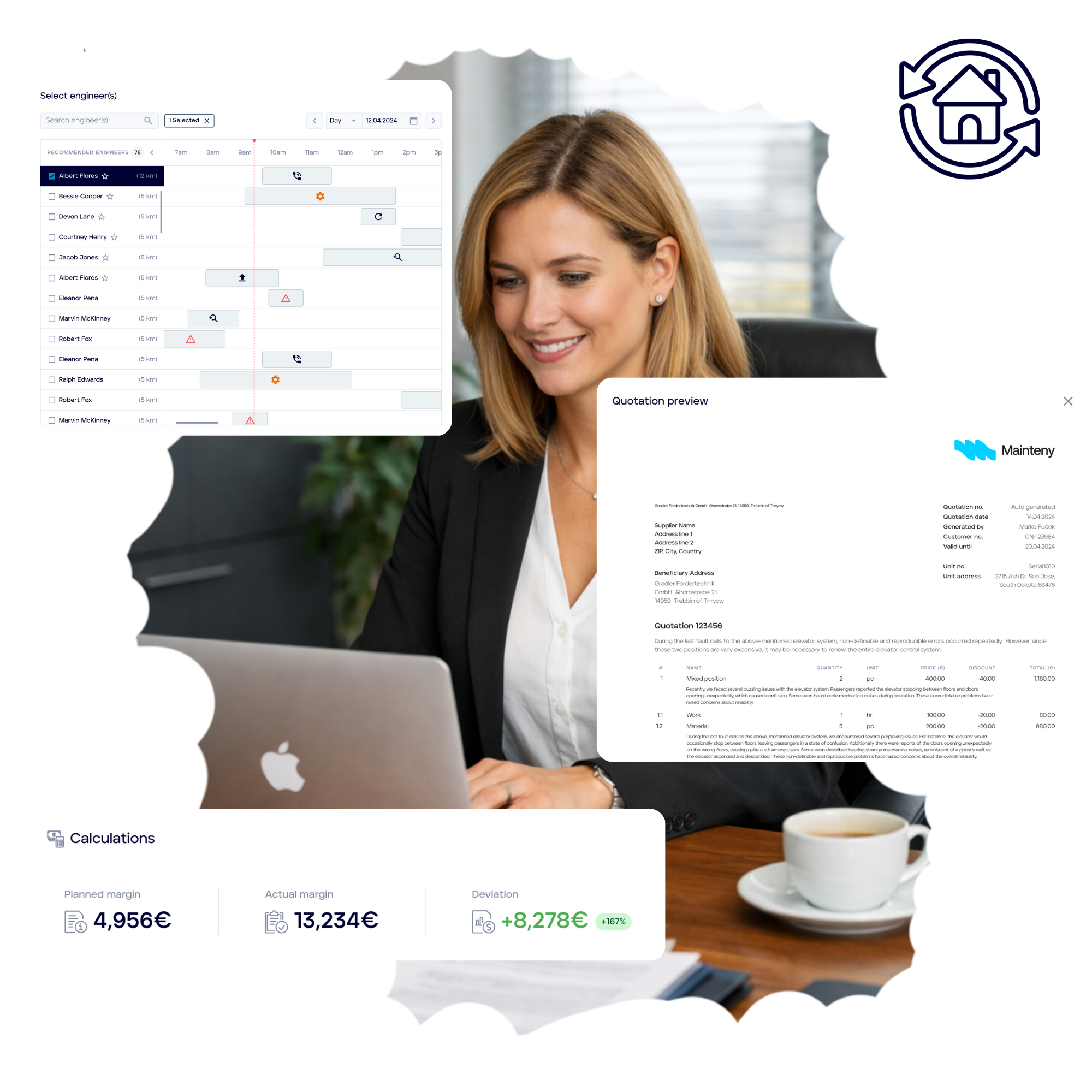 Mainteny can create service jobs automatically and assign them to priority engineers. Our job and asset map enables service managers to make scheduling faster and more reliable, while reducing travel time.