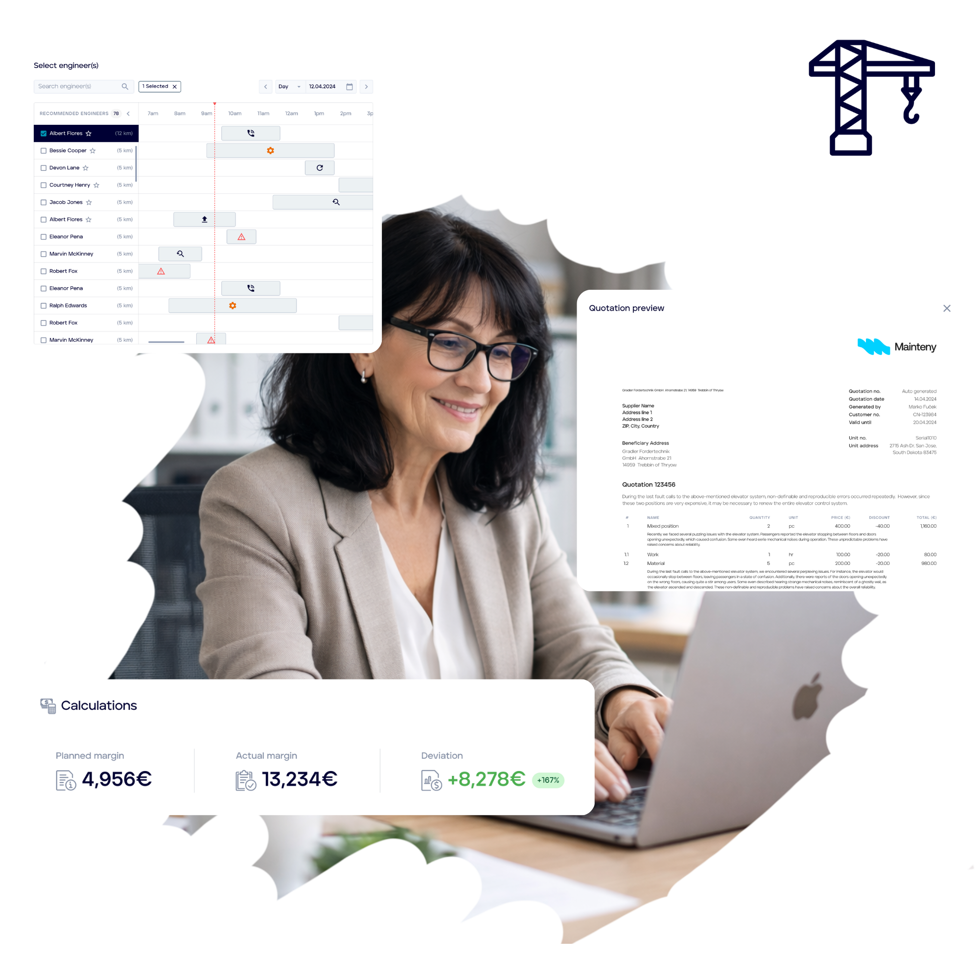 Mainteny can create service jobs automatically and assign them to priority engineers. Our job and asset map enables service managers to make scheduling faster and more reliable, while reducing travel time.