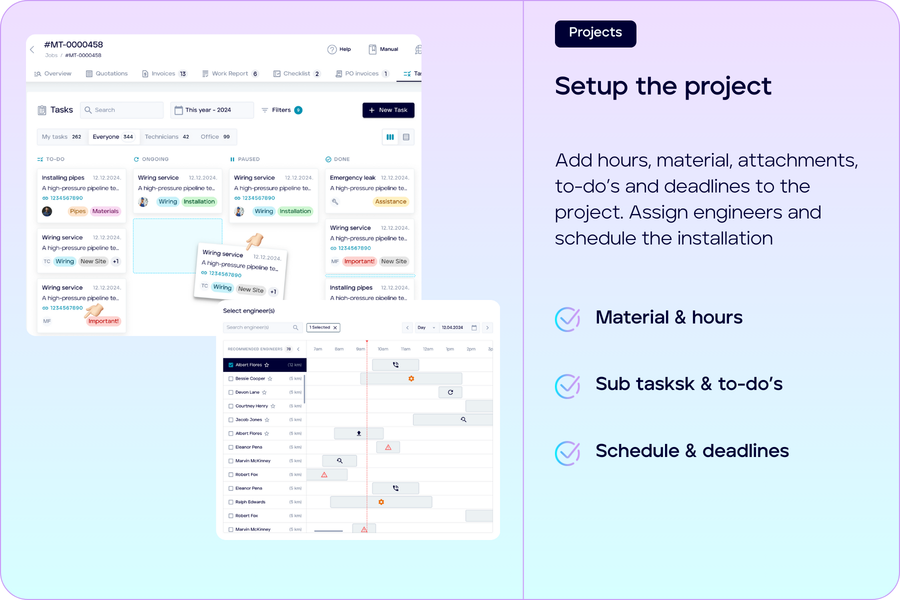 Absolutely. Mainteny’s mobile app empowers field engineers with everything they need—customisable checklists, time tracking, work slips and signature capture. It also works offline, so your team stays productive even without internet access. The app is avalaible for iOS and Android.